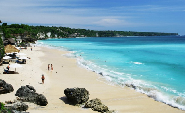 Jimbaran di Indonesia Bisa dikatakan salah satu pantai terbaik karena bentangan pasir putih, ombak yang bagus, dan matahari terbenam fantastis dan sangat cocok untuk berbulan madu.