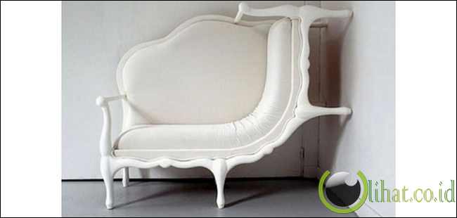 Sofa ini memiliki bentuk unik dengan desain cantik dan romantis. Berwarna putih bersih, sofa tersebut seolah hendak memanjat tembok. Karena desainnya tersebut sofa ini juga bisa menyangga tubuh ketika kita asyik membaca.