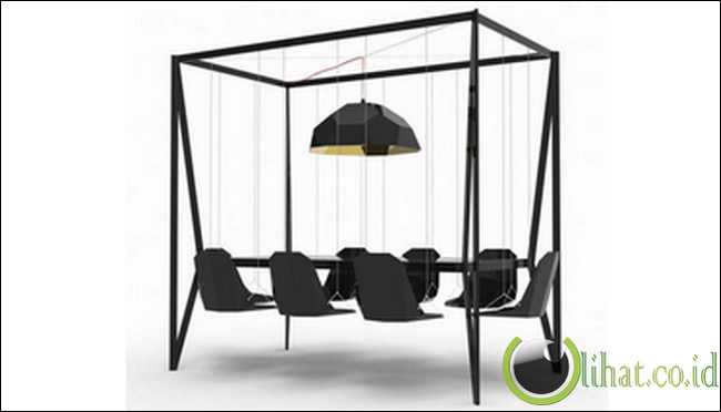 Tidak semua furniture rapat di kantor harus didesain dengan kaku. Furniture yang satu ini unik karena didesain mirip dengan ayunan yang dipadu menjadi satu. Rapat bisa dipastikan bisa lebih fresh jika dilakukan di atas kursi ini.